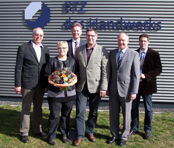 Neben Beuker und seiner Ehefrau Margarete hatten sich die Arbeitskollegen sowie BTZ-Geschäftsführer Tilman Stürmer, sein Stellvertreter Eugen Bürsken sowie sein Nachfolger Matthias Ricken und Hans-Dieter Gausmann, Geschäftsführer bei der Handwerkskammer (HWK) Osnabrück-Emsland-Grafschaft Bentheim eingefunden, um den nach seiner letzten Phase Altersteilzeit im Sommer in den Ruhestand Wechselnden zu ehren.